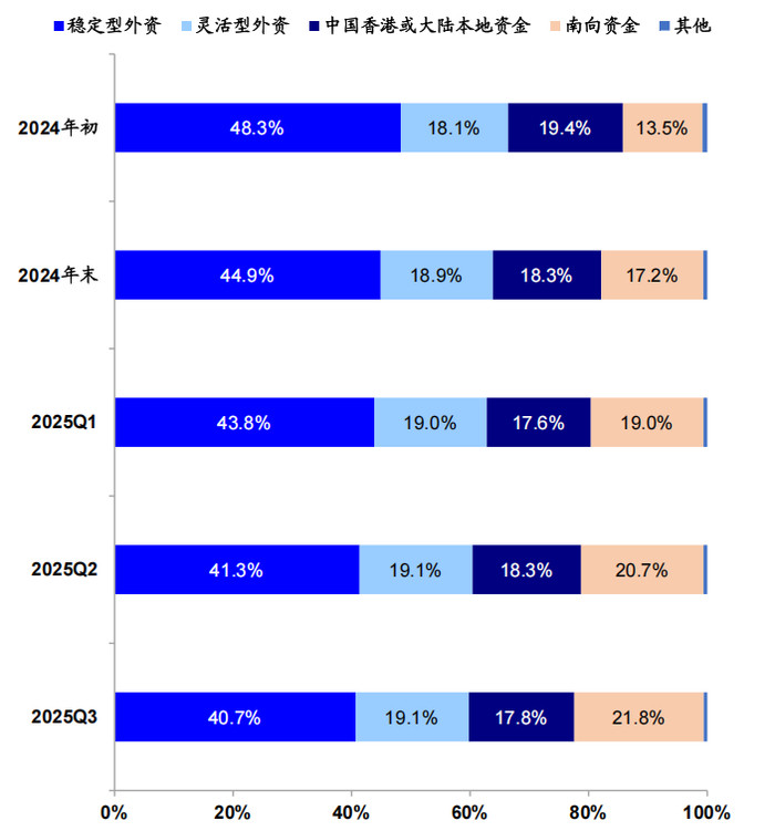 资金视角来看,南向流入空间尚大,ETF或成新增主力。年初至10月底,南向资金累计流入港股规模达1.26万亿港元,成为支撑港股的核心动力。此外,“被动替代主动”的趋势将愈发明显,这也与个人资金参与度的提升息息相关。特别考虑到港股的低配情况,南向资金将持续增配港股,尤其个人资金有较大的增配空间,个人资金通过ETF流入港股的趋势预计也将持续,